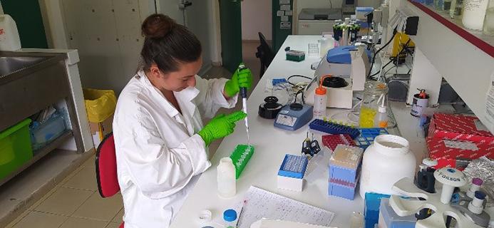 Expérience en laboratoire par Marine Seidel, doctorante sur la cercosporiose noire des bananiers pour concevoir des méthodes de contrôle innovantes © Cirad