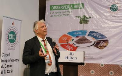 La première journée de la conférence a été consacrée aux prévisions métrologiques, à l’impact du stress hydrique, aux différentes pistes pour gérer de façon optimale les plantations dans un tel contexte climatique, mais aussi à la durabilité de la production caféière et cacaoyère. Des résultats d’études épidémiologiques ainsi que des modèles prévisionnels ont été présentés, notamment par Christian Cilas, expert cacao du Cirad, invité par le CICC à cet évènement.