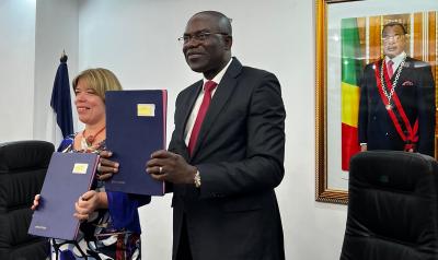 Ce Protocole d’Entente, préparé avec l’appui de l’Ambassade de France au Congo, a été signé, au cours d’une cérémonie protocolaire, par l'Ambassadrice de France au Congo, Mme Claire Bodonyi et le Secrétaire général des affaires étrangères congolais, Mr André Poh, en présence de la Présidente-directrice générale du Cirad, Mme Elisabeth Claverie de Saint Martin, du directeur régional du Cirad, Mr Denis Depommier, des Directeurs des Départements ES et Persyst, MM Sylvain Perret et Jean-Paul Laclau, et du correspondant Congo, Mr Éric Forni. Les chercheurs du Cirad en poste au Congo, des agents de l’Equipe France (AFD, SCAC…), divers partenaires du Cirad conviés à cette occasion et de nombreux personnels des Affaires étrangères congolaises participaient à cette cérémonie de signature.