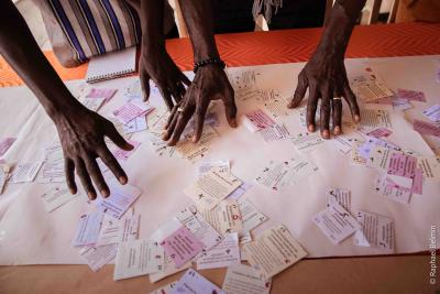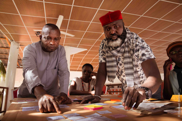 Lors de cet atelier, la cinquantaine de participants a été répartie en quatre groupes de travail, chaque groupe évoluant de manière indépendante. Les résultats et leçons proposés par chaque groupe ont ensuite été mis en commun avec l’ensemble des participants qui ont pu en débattre. L’un de ces groupes de travail a notamment rédigé une courte déclaration résumant leur vision d’avenir pour le territoire : "En 2050, la Basse-Casamance sera un territoire agroécologique qui valorise son patrimoine naturel, culturel et cultuelle pour assurer la souveraineté alimentaire, la résilience climatique et le développement économique durable des communautés locales."