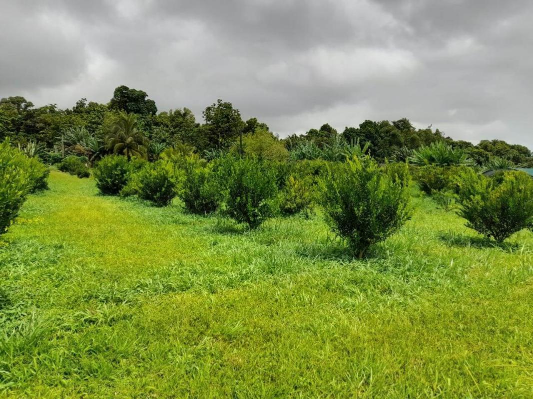 Parcelle d’agrumes du site Cirad Neufchâteau. Cette parcelle, plantée en 2021, est contaminée par l’HLB. @ Maeva Marcin