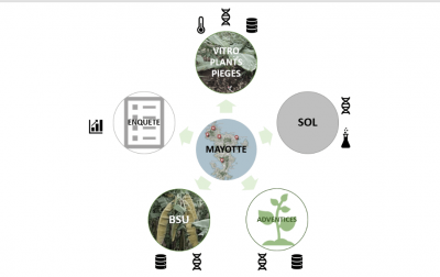 La Fusariose TR4 est une maladie qui cause des ravages dans les bananeraies du monde. L’expertise du Cirad, pour la zone Amérique Latine et Caraïbe, sur la maladie est localisée en Guadeloupe. Les connaissances sur cette maladie reposent le plus souvent sur des études en contexte de monoculture intensive. Or, la banane est cultivée dans d’autres systèmes, comme les jardins créoles (figure 1), systèmes de polyculture ou de polyculture-élevage proche des agroécosystèmes, qui restent courants dans la Caraibe. Ainsi, il est important pour nos régions ultramarines d’obtenir plus de données sur le comportement de la Foc TR4 dans ces conditions. C’est pourquoi, la zone d’étude du projet a dû s’élargir à l’Océan Indien, où se situe l’archipel de Mayotte. Premier foyer Foc TR4 de France, l’archipel de Mayotte offre un contexte d’étude de la maladie dans des systèmes proches de l’agroécologie et de nos jardins créoles.