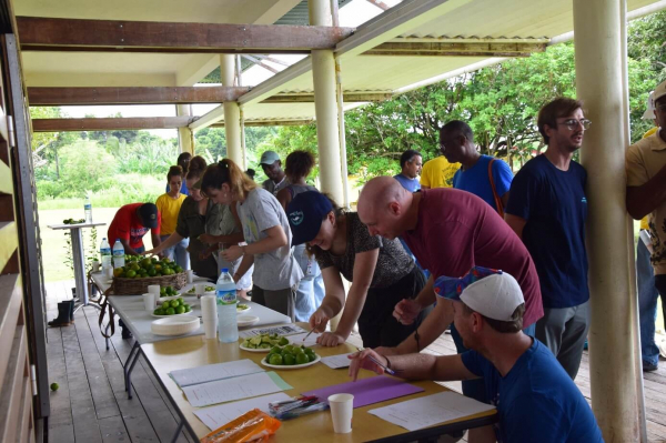 La visite a été suivie par une analyse sensorielle de différentes variétés d'agrumes cultivées localement. Les participants ont été également invités à évaluer les quartiers et les jus de limes. Ces évaluations ont marqué le premier contact du public avec de nouvelles variétés de limes issues du programme de sélection du Cirad, offrant ainsi un premier retour sur la qualité et les caractéristiques de ces innovations variétales.
