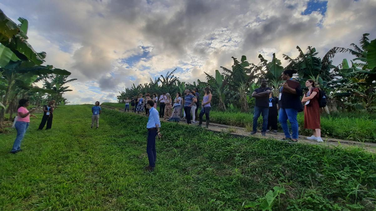 Le Cirad a fait découvrir deux innovations agroécologiques réalisées par les agriculteurs guadeloupéens, en particulier des systèmes agroforestiers bananes/cacao/pois doux certifiés en agriculture biologique (projet INGA, FEADER Guadeloupe) et sur l’intégration d’ovins dans les bananeraies pour gérer l’enherbement (projet Territoires Durables, Ministère des Outre Mer). Ces systèmes innovants, co-conçus avec les agriculteurs et d’autres acteurs agricoles du territoire, permettent de réduire drastiquement voire supprimer totalement l’usage d’intrants de synthèse (pesticides et fertilisants) tout en assurant une viabilité économique aux exploitations.