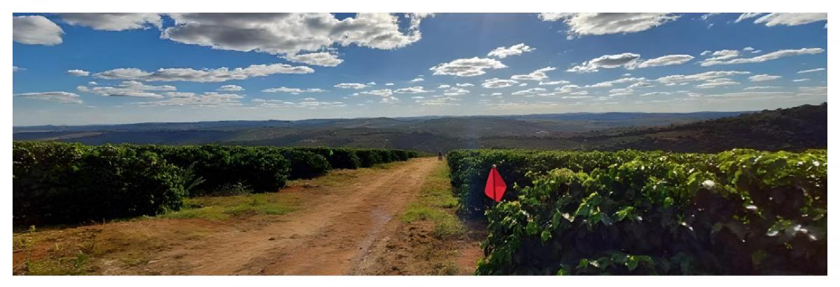 Lancée en 2020, l’initiative internationale ECOFFEE vise à identifier, tester et accompagner des alternatives concrètes aux pesticides de synthèse dans les systèmes caféiers. Plutôt que d’imposer des protocoles techniques rigides, elle adopte une stratégie progressive de substitution des pratiques, en remplaçant les méthodes fortement dépendantes des pesticides par des solutions durables, efficaces et adaptées aux contextes locaux. Ce projet, dirigé par le Cirad en coopération avec des institutions de recherche au Costa Rica, au Nicaragua, au Vietnam et au Brésil, est soutenu par de nombreuses entreprises du secteur privé du Café comme Lavazza, Illy et Nestlé, par exemple. Dans le cadre de ce projet, le Cirad travaille au Brésil avec l’Université fédérale de Viçosa (UFV), dans l’État du Minas Gerais où deux sites expérimentaux (Fazendas) ont été installés en 2023. Sur ces sites, les essais ECOFFEE testent des stratégies innovantes de réduction des pesticides pour lutter contre la mineuse des feuilles (Leucoptera coffeella) et la rouille orangée (Hemileia vastatrix) des feuilles du caféier. Le premier site a été installé dans une ferme située dans le Cerrado Mineiro, biome brésilien caractérisé par ses terrains plats, permettant une production hautement mécanisée. Le deuxième site a été installée dans le sud du Minas, région caractérisée par des collines ondulées.
