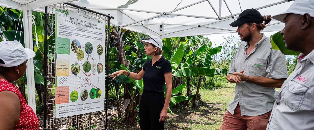 Des chercheurs du Cirad entreprennent avec nos partenaires des démarches novatrices pour transformer l'agriculture réunionnaise, traditionnellement dépendante de produits chimiques, vers des pratiques agroécologiques durables.
