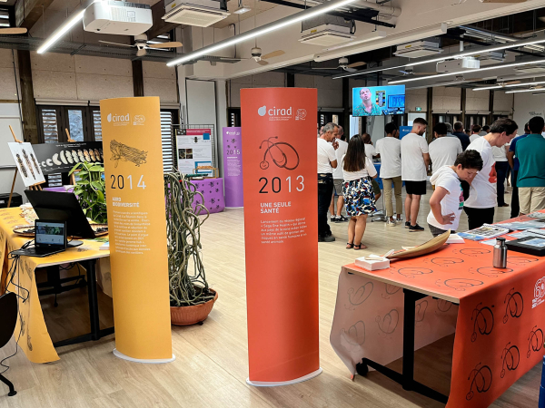 Un stand pour illustrer l'apport de la recherche dans le développement et la diversification des filières fruitières tropicales (© M. Dailloux, Cirad)