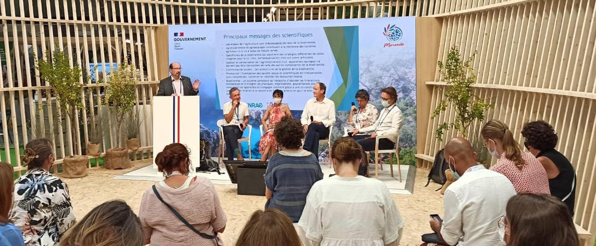 These messages were supplemented by the institutional viewpoint presented by representatives from the IUCN, CIRAD, IRD, INRAE and AFD at a round table on 5 September. They highlighted the importance of the question of what type of agriculture should be funded and how to optimize what biodiversity can provide on a territory level. They also stressed the need to look at contributions to and moves in favour of agricultural transformation in terms of support for each and every stakeholder, from public policymakers to farmers. "This transformation calls for both time and science", said Élisabeth Claverie de Saint Martin. "But also forums, within which scientists and policymakers can talk freely." This means bringing science and policy closer together, by gearing our operations towards impact.