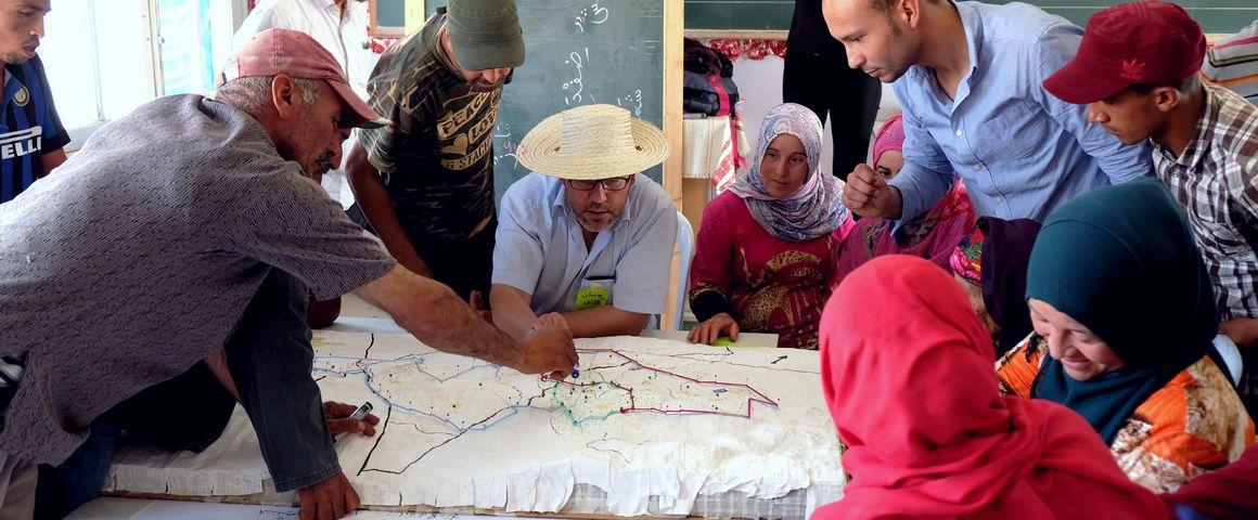 Échanges autour d'une carte en 3D à Kef (Tunisie) dans le cadre du projet Pacte @ E. Hassenforder, Cirad