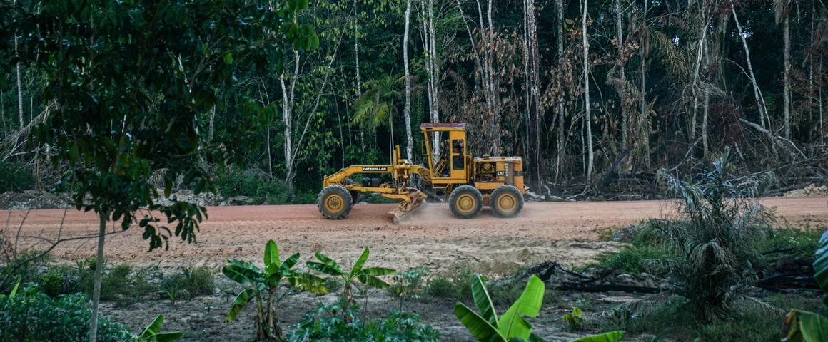 Au Suriname, construction d'une route en pleine foret pour accéder aux concessions foncières ou minières © ILC