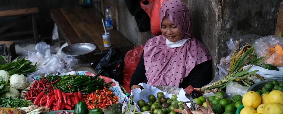 A fruit and vegetable seller on a food market in Jakarta, Indonesia © A. Rival, CIRAD