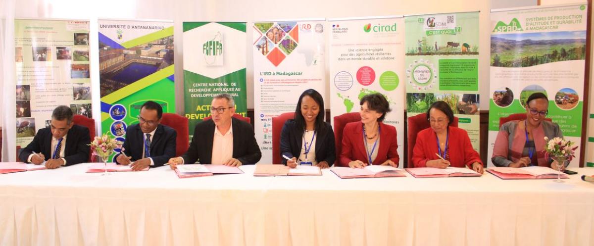 On 25 April 2024, the CEOs, Directors general and national representatives of CIRAD, FOFIFA, the University of Antananarivo, FIFAMANOR, Africa Rice, GSDM and IRD gathered to confirm their commitment by extending the partnership agreements covering two platforms: "Forests and Biodiversity" and "SPAD".