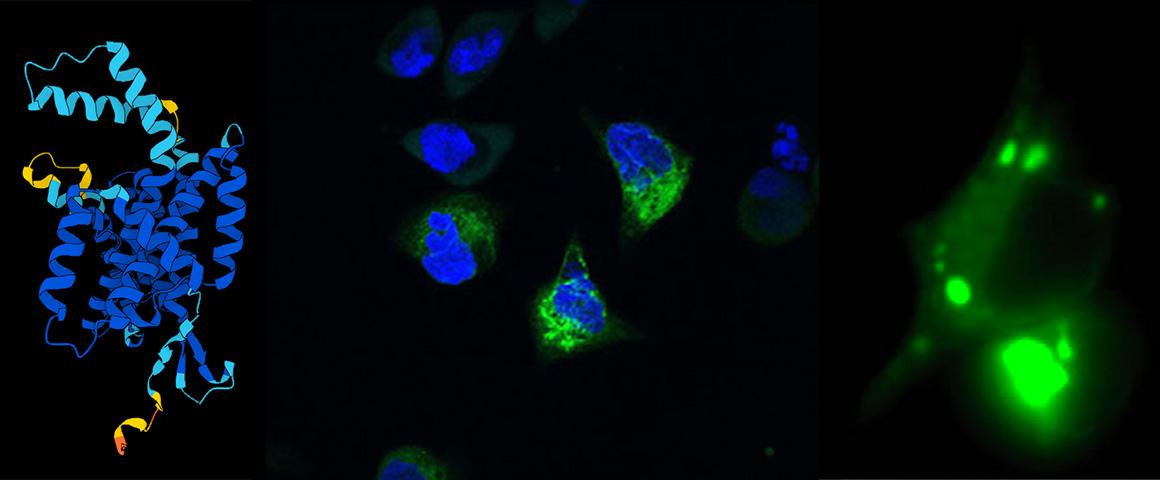 Image representing from left to right: a 3D structure of the protein Rhg1, then its expression in the host cell.