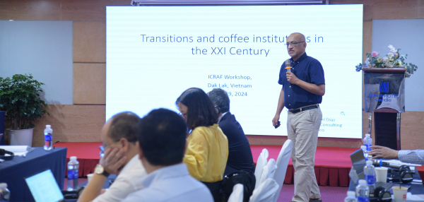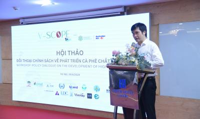 Following this, Dr. Estelle Biénabe, V-SCOPE project leader from CIRAD/ICRAF, provided updates on the project's progress, particularly in enhancing the quality of Vietnamese Robusta. Adding a global perspective, Dr. Manuel Díaz shared insights into successful international strategies and innovative models for organizing coffee farmers and industries, demonstrating how these could be adapted to benefit Vietnamese coffee production.