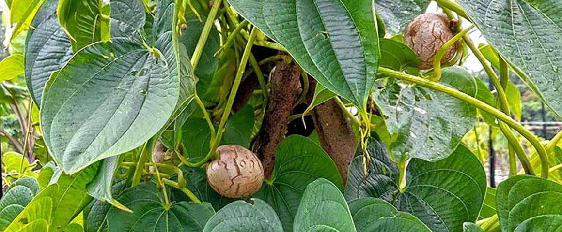 Des pommes en l'air associées à la pomme de terre mais caractérisées par des tubercules aériens. © J. Huat, Cirad
