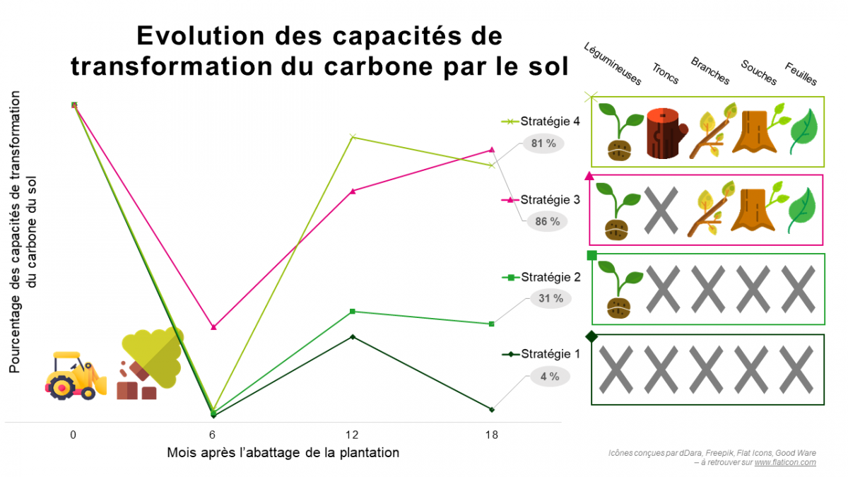 Évolution de la restauration de la fonction de transformation du carbone par le sol après abattage © d’après Thibaut Perron et al., Science of the Total Environment, 2021