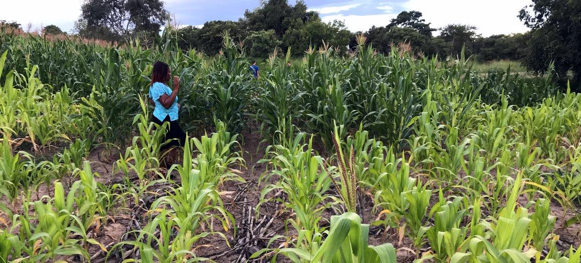 Une parcelle expérimentale de Maïs au Zimbabwe, au premier plan du maïs carencé en azote dans un sol sablonneux, au second plan une combinaison de fumier et d'engrais minéraux résout la carence © R. Cardinael, Cirad