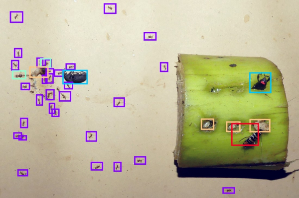 « Après avoir identifié les différentes espèces observées, nous avons utilisé une partie de ce jeu de données pour entraîner un algorithme d’apprentissage* conçu pour reconnaître et caractériser des objets de très petite dimension », explique Paul Tresson, doctorant au Cirad et au Laboratoire d’informatique, de robotique et de microélectronique de Montpellier dont la thèse est labellisée #DigitAg. Une fois l’algorithme d’apprentissage éprouvé, les chercheurs lui ont ensuite soumis des séquences d’images inédites afin de tester sa capacité de discrimination. Résultat : près de 90 % des invertébrés présents sur les clichés ont été identifiés correctement. Le niveau de précision de la méthode s’est par ailleurs révélé suffisamment élevé pour caractériser les différents types d’individus au sein d’une même espèce. Confronté à des fourmis, l’algorithme a par exemple été capable de distinguer une ouvrière d’un soldat.