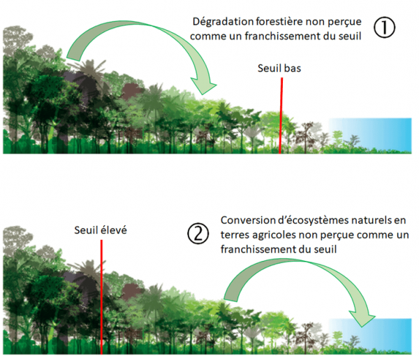 Pour la déforestation importée, le choix de ce seuil est critique. S’il est bas, une forte dégradation forestière peut se produire sans que cette transformation soit qualifiée de déforestation. S’il est élevé, la conversion en terres agricoles qui ont toutes les caractéristiques écologiques de forêts pourrait ne pas être considérée comme de la déforestation.
