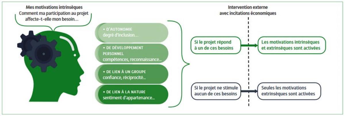 Les quatre principales motivations intrinsèques en jeu dans un projet intégré de conservation et développement © Cirad