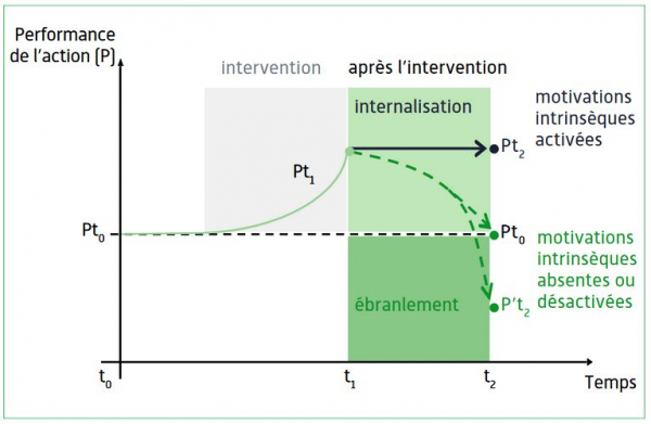 Les deux types de motivation sont des moteurs de l’action. Toutefois, alors qu’une motivation intrinsèque enclenche des changements durables de comportement, l’effet de la motivation extrinsèque disparaît lorsque le levier qui la provoque s’arrête.