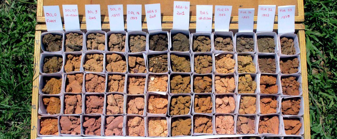 Échantillons de sols récoltés dans le cadre du dispositif CARPAGG (Carbone des Pâturages de Guyane et gaz à effet de serre) © V. Blanfort, Cirad