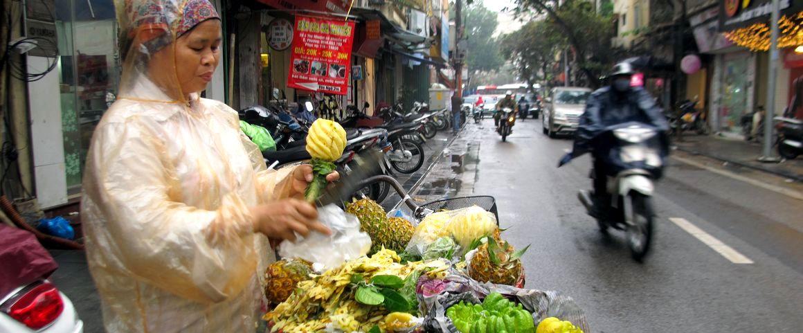 Vente d’ananas dans la rue à Hanoï, Vietnam © C. Dangleant, Cirad