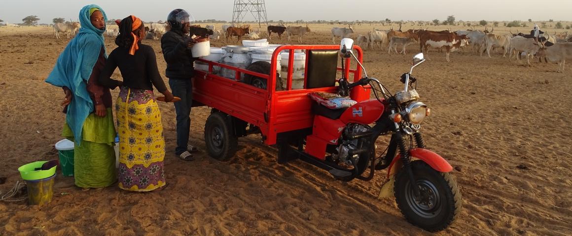 Collecte de lait auprès d'un élevage dans la commune de Richard-Toll, au Nord du Sénégal © J.-D. Cesaro, Cirad