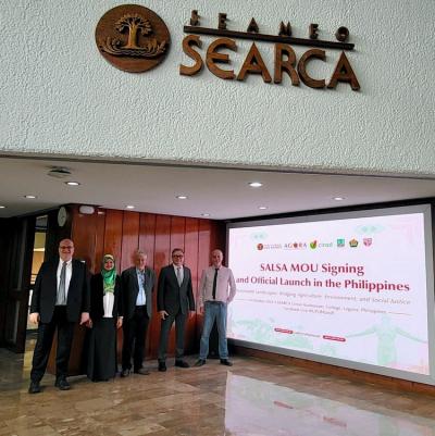 Cet événement de lancement symbolise une étape majeure dans les relations multilatérales entre les trois pays partenaires, unis par un objectif commun : bâtir des systèmes agricoles plus résilients et durables. Le dispositif Salsa réunit cinq partenaires : l’Université des Philippines Los Baños (UPLB), L’université Putra Malaysia (UPM), l’Institut Pertanian Stiper, (INSTIPER, Indonésie), le Cirad et l’organisateur de cette signature, le Southeast Asian Regional Center for Graduate Study and Research in Agriculture (SEARCA). Tous ont exprimé leur enthousiasme pour ce projet en commun.