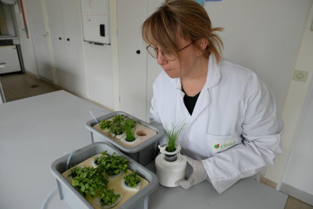 De nouvelles méthodes sont donc nécessaires afin d’évaluer les risques sanitaires au plus juste. C’est toute l’ambition du partenariat entre la société d’ingénierie GINGER BURGEAP, Inrae et le Cirad autour du Rhizotest, un biotest de laboratoire qui vise à évaluer les transferts des éléments traces du sol vers la plante via une méthode standardisée, plus simple et rapide à mettre en œuvre qu’un essai de terrain. Le développement appliqué de l’outil est soutenu par l’Agence de l'environnement et de la maîtrise de l'énergie (Ademe) à travers le projet PHYSALIS.
