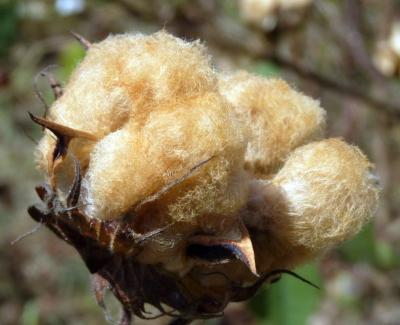 Capsule de cotonnier avec des fibres colorées, Bénin. (© P. Marnotte/Cirad)